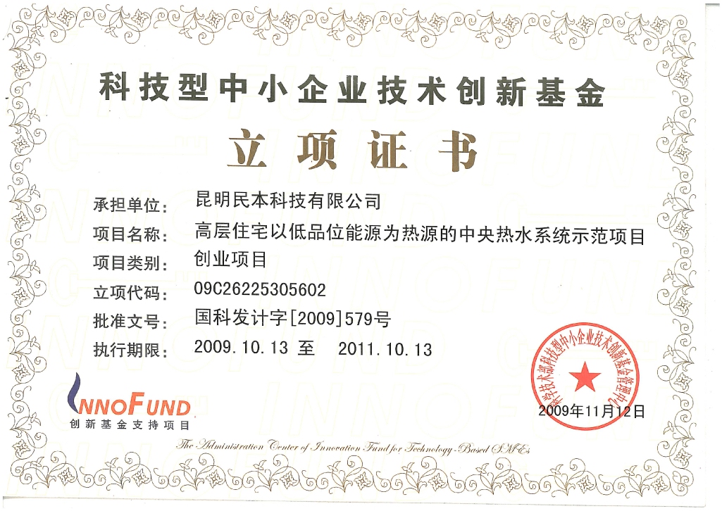 创新基金立项证书